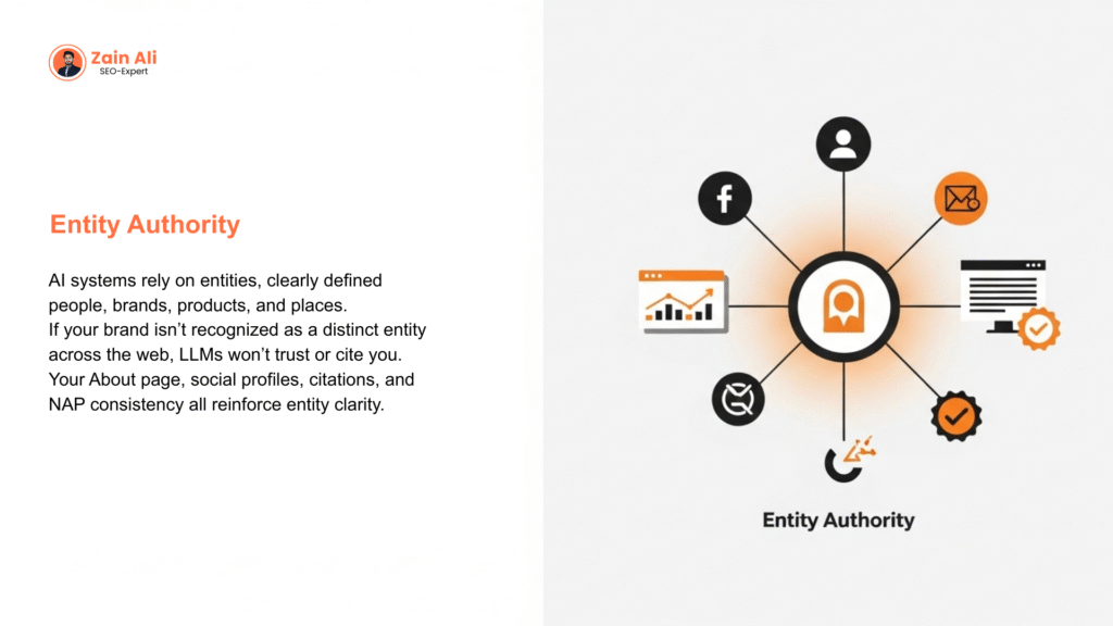 AI systems rely on entities, clearly defined people, brands, products, and places.